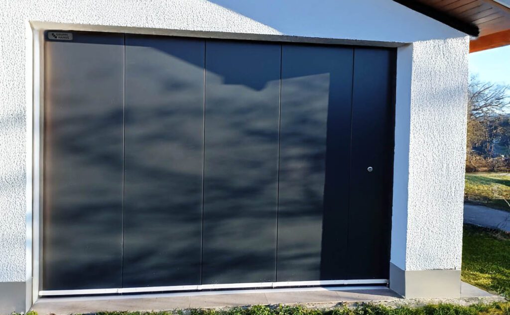 Garažna vrata za tiste, ki želijo nekaj več…. Od klasičnih sekcijskih vrat se razlikujejo samo v načinu odpiranja, kar pomeni, da se odpirajo bočno ob steno in ne navpično navzgor. Ta garažna vrata so dobra rešitev v primeru, da imate na stropu kakšne ovire. Vsekakor pa so bolj ekstravagantna in dajejo občutek naprednejše tehnologije.